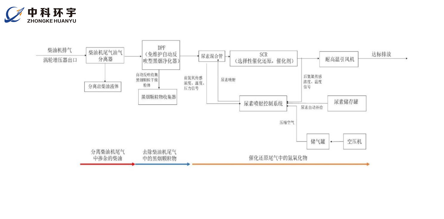 In response to the problem, we designed the treatment system mainly from 2 aspects: particulate management using particulate filters (DPF), physical filtration - maintenance-free black smoke purification device, NOx management using chemical reaction - selective catalytic reduction SCR denitrification technology route, after treatment of the exhaust gas to invisible black smoke, and at the same time on the harmful pollutants NOx reduction to harmless nitrogen, so that the treated exhaust gas Comply with the national standard "Comprehensive Emission Standards for Air Pollutants" GB16297-1996 pollutant limit indicators, reduce pollution of the environment.